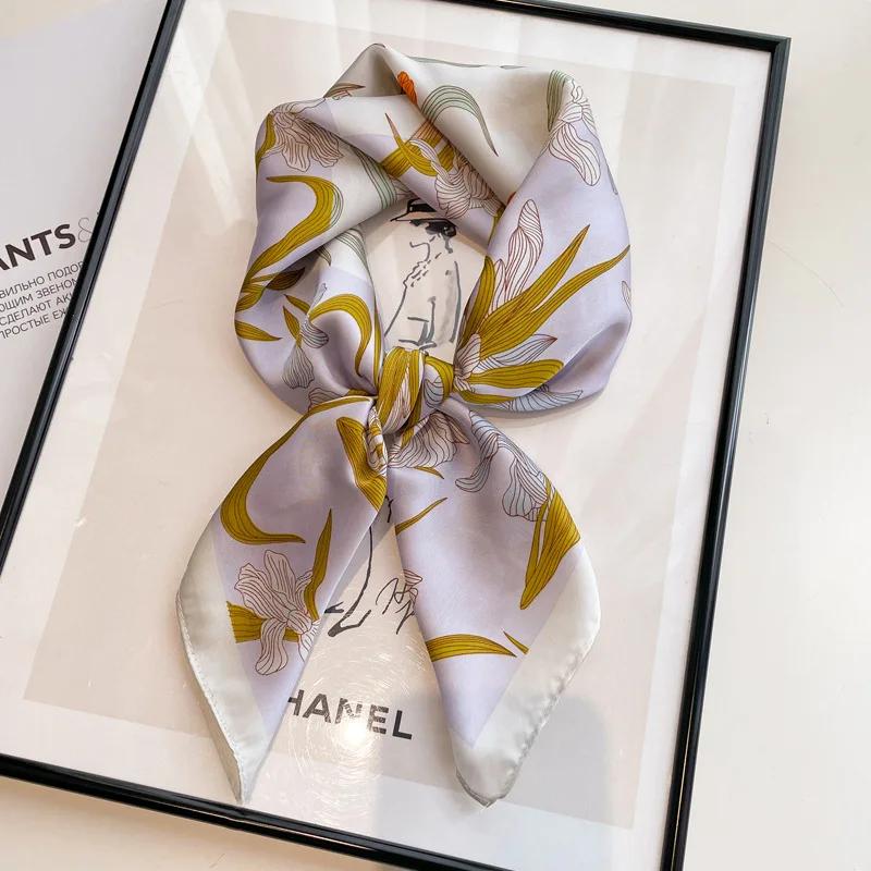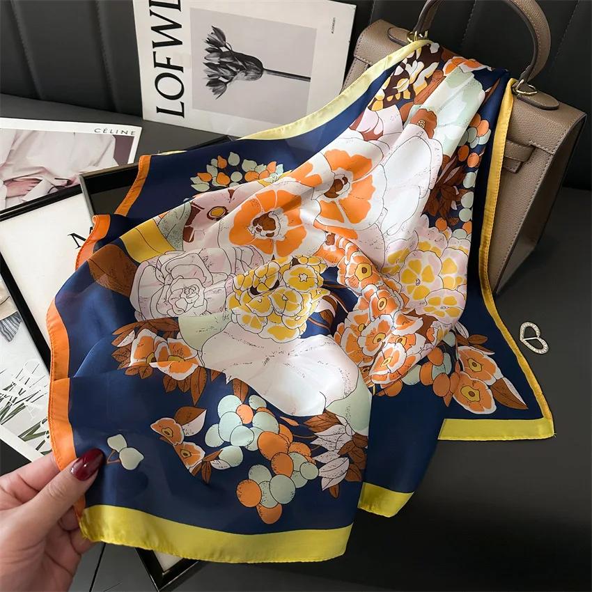Модные квадратные платки женский шаль цветочный шелк имитация шелка атлас фуляр шарф женская бандана 70*70см шали для дам