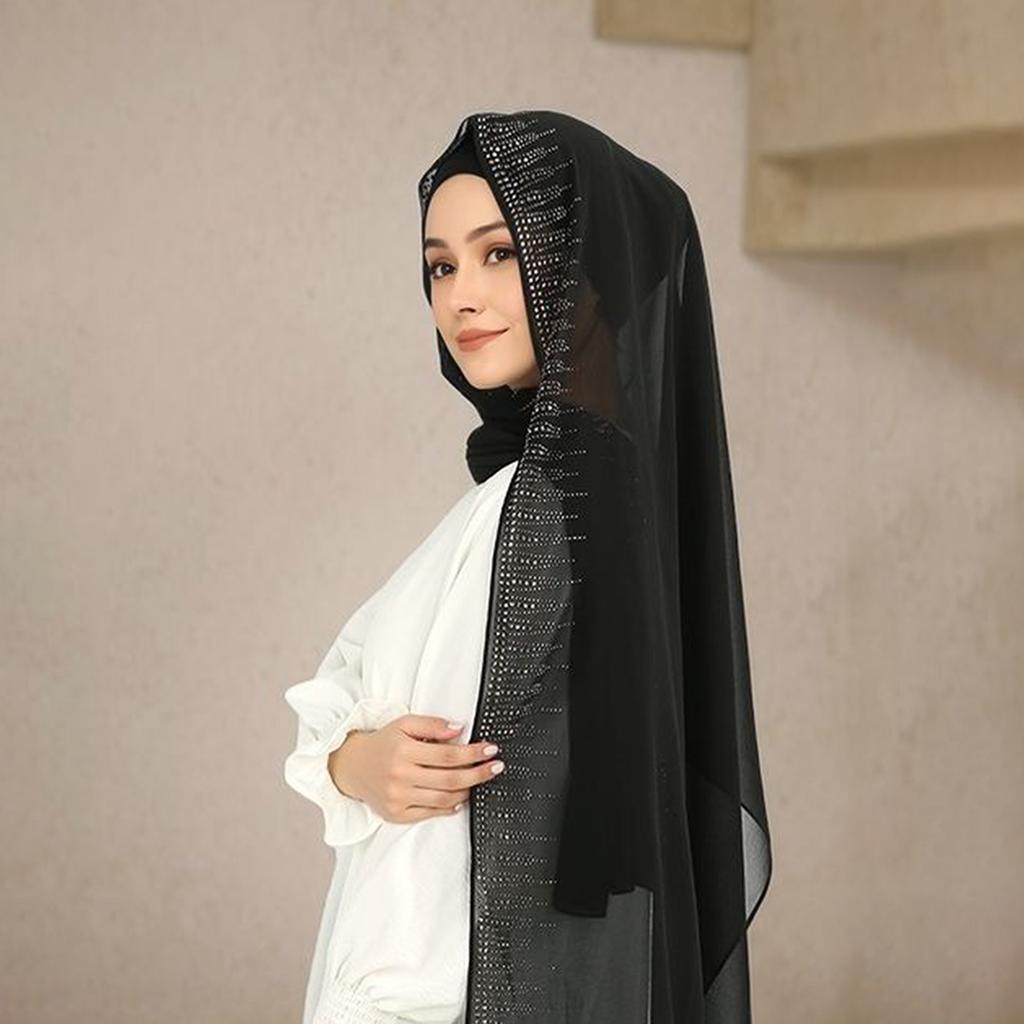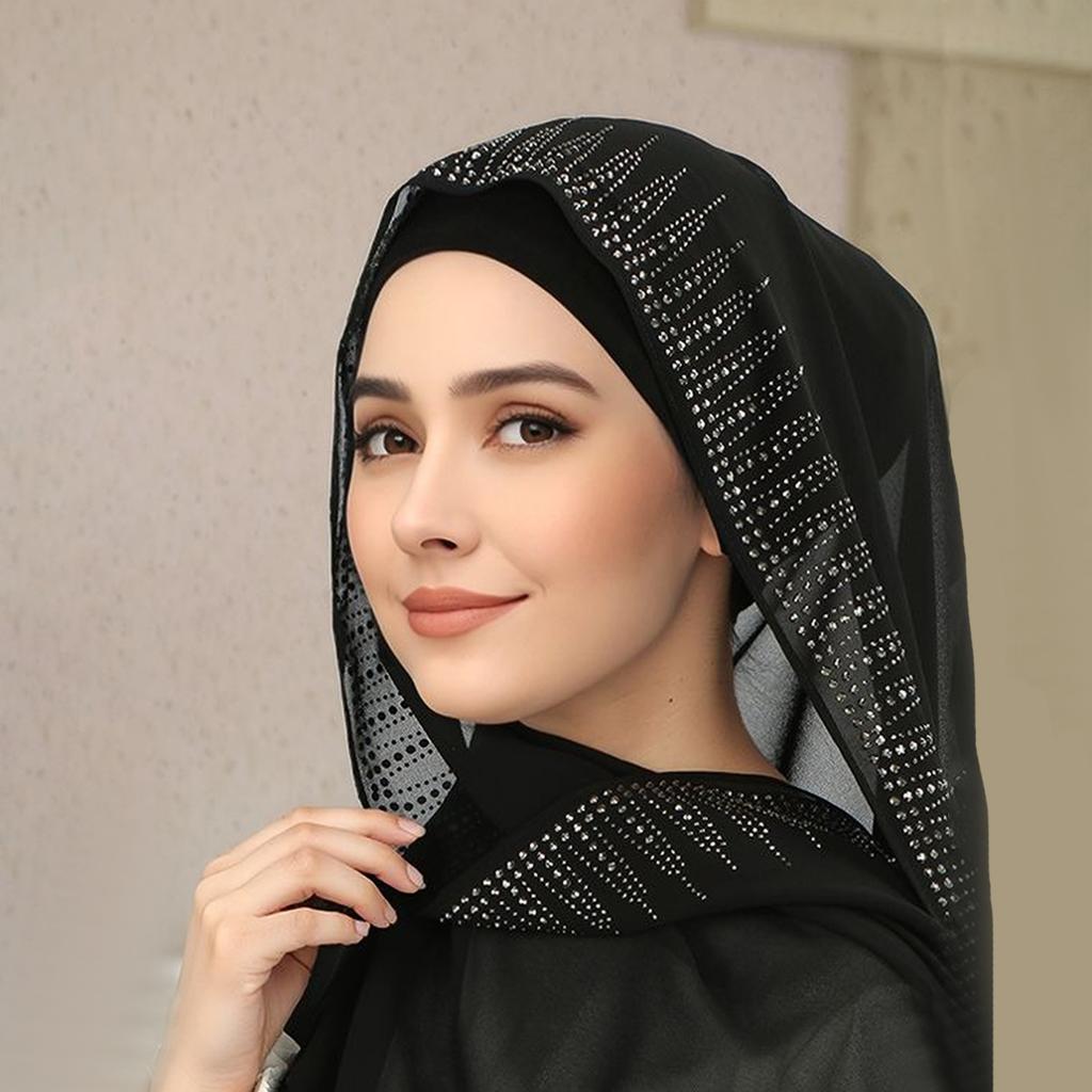Блестящий шифоновый хиджаб со стразами, длинный шарф, исламские хиджабы, женские тюрбаны, повязка на голову, сверкающий шарф, модный аксессуар 175*70 см
