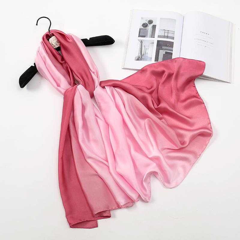 Temperament Women Luxury Scarf Gradient Scarf Silk Geometric Muslim Headband Shawl Beach Neckerchie
