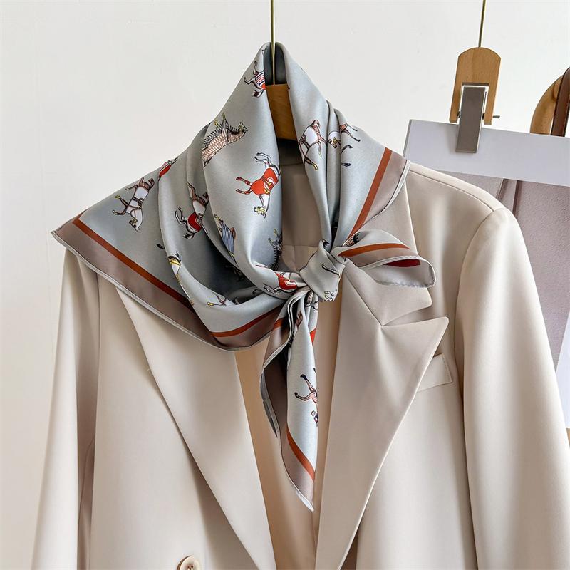 70см Роскошный Брендовый Квадратный Шарф Дизайн Двусторонний Шаль Накидка Принт Твил Шелк Женский Хиджаб Женский Фуляр Повязка на Голову Бандана