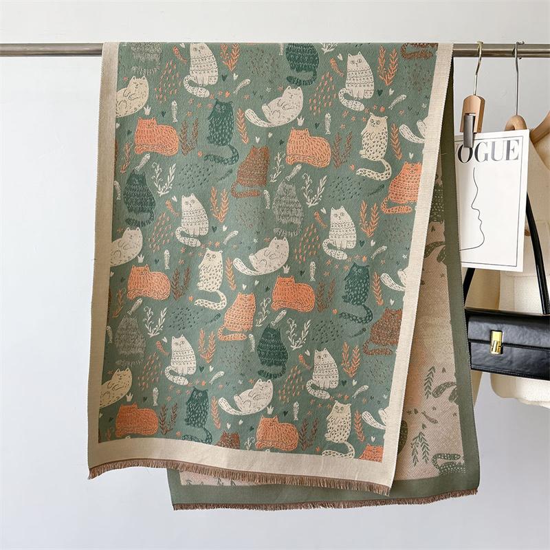 Роскошный кашемировый шарф с принтом кота, женский зимний двухсторонний толстый теплый женский шарф-шаль, шарфы из пашмины, хиджаб, палантины