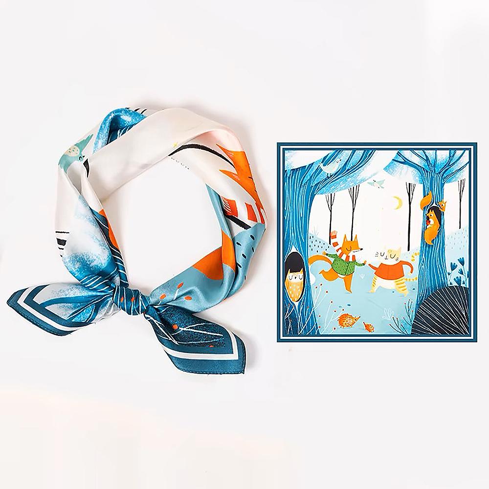 100% Pure Mulberry Silk Women Square Scarf Prints Headband Neckerchief Luxury Female Hair Ornament Female Bandana Scarves 53CM