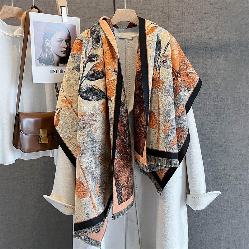 Лист Роскошный Зимний Женский Шарф Имитация Кашемира Утолщенный Теплый Платок Пашмина Шарфы Женский Платок Одеяло