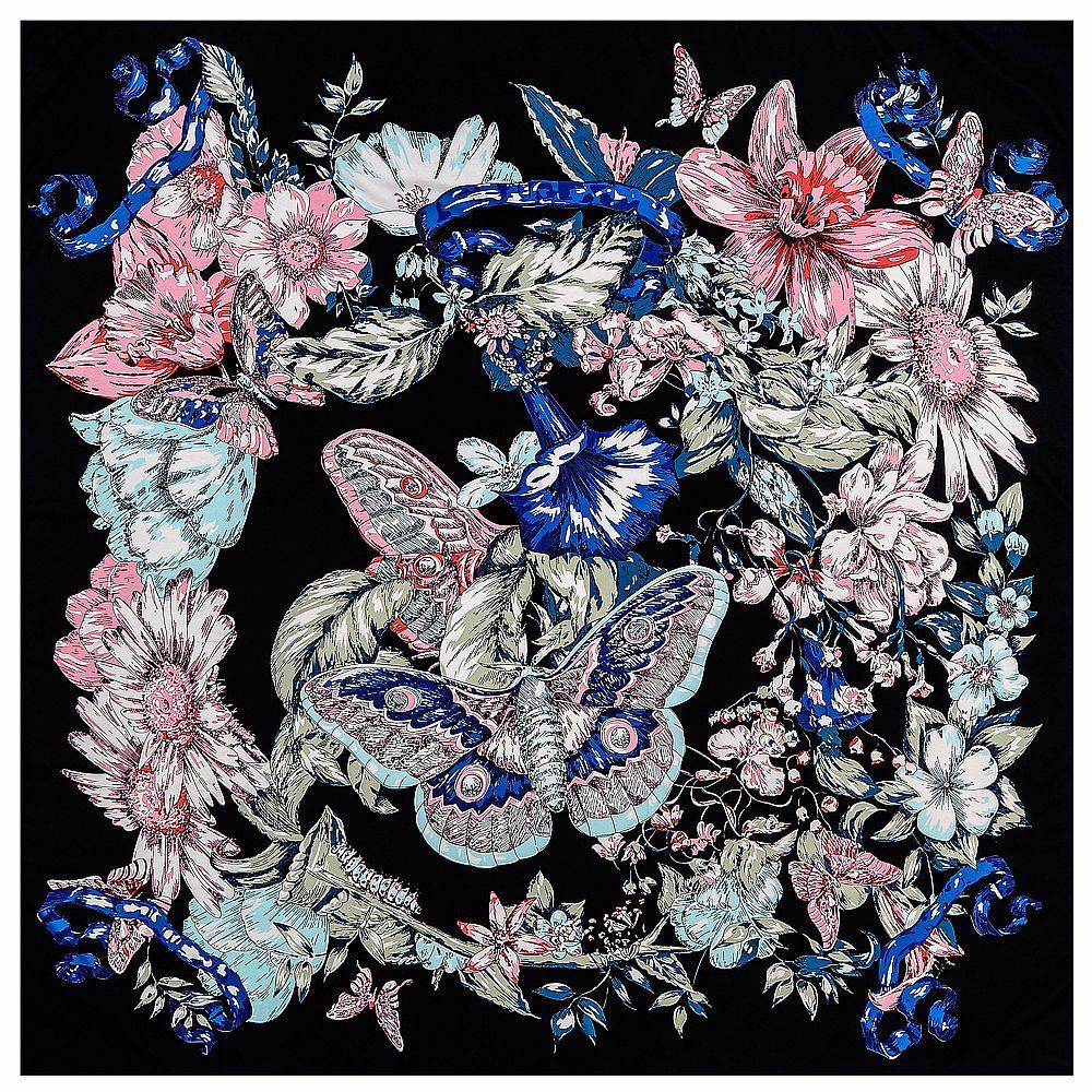New Hot Shawl Twill Silk Scarf Hand-painted butterfly Flowers Hijab 130cm Square Scarves Kerchief Woman Headband Scarf&Wraps