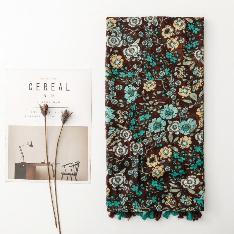 88*180см Богемский Зеленый Цветочный Женский Вискозный Шарф Шаль Хлопок Лен На ощупь Кисточки Пашмина Мусульманский Хиджаб Обёртывание Леди Женский