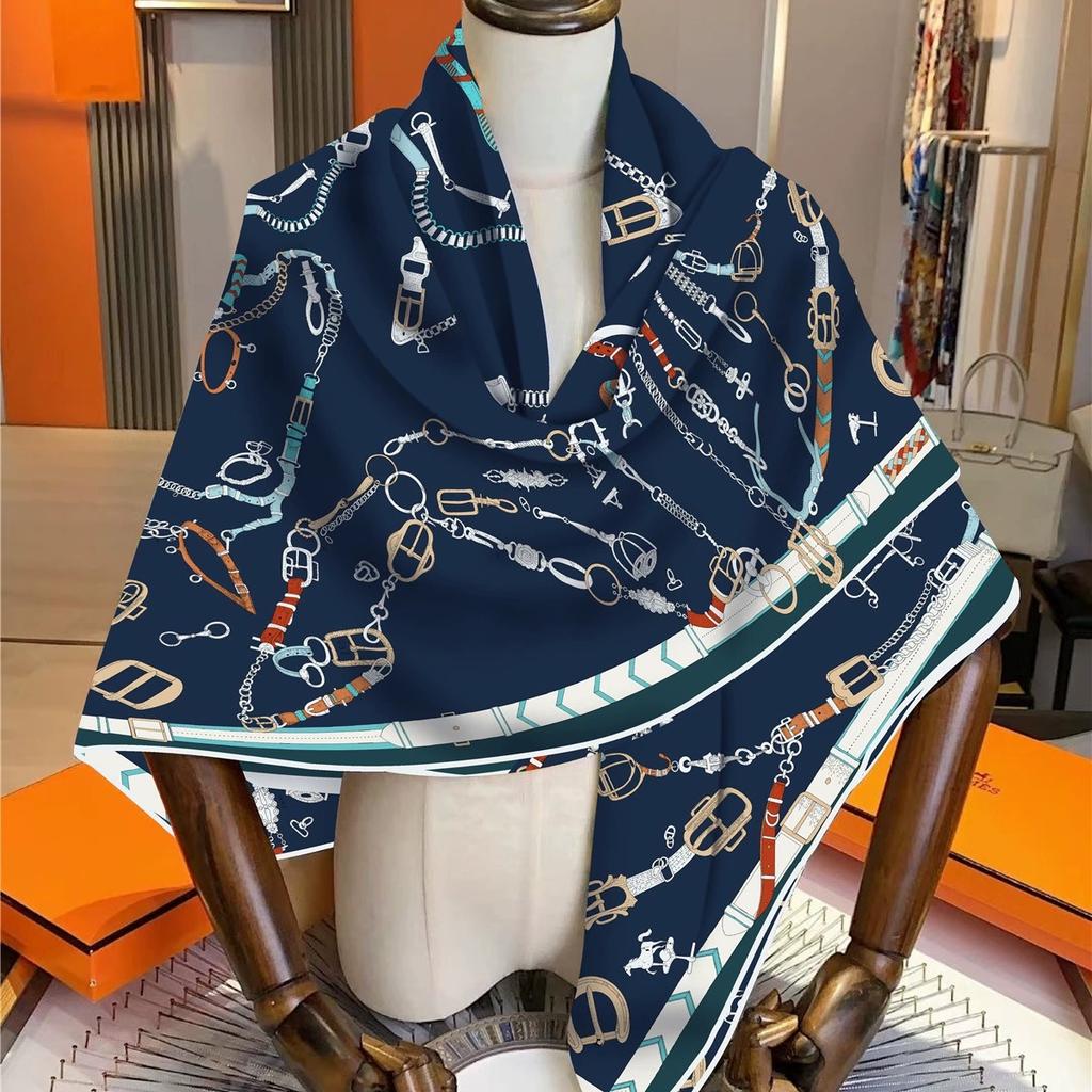 Роскошный шарф из искусственного шелка и шерсти с принтом, 130 см, женский большой платок, французская квадратная бандана, косынка, хиджаб, шарфы для дам