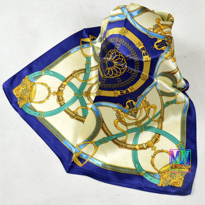 Женский маленький шелковый платок с принтом модного цепного узора, темно-синий квадратный, 100% шелковый платок, платок в европейско-американском стиле