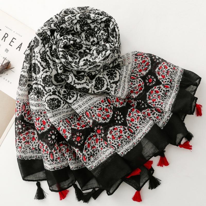 Осень и Зима Теплый 88*180см Женский Вискозный Шарф Шаль Хлопково-Льняное Ощущение Кисточки Пашмина Мусульманский Хиджаб Обмотка Буфанда Фуляр