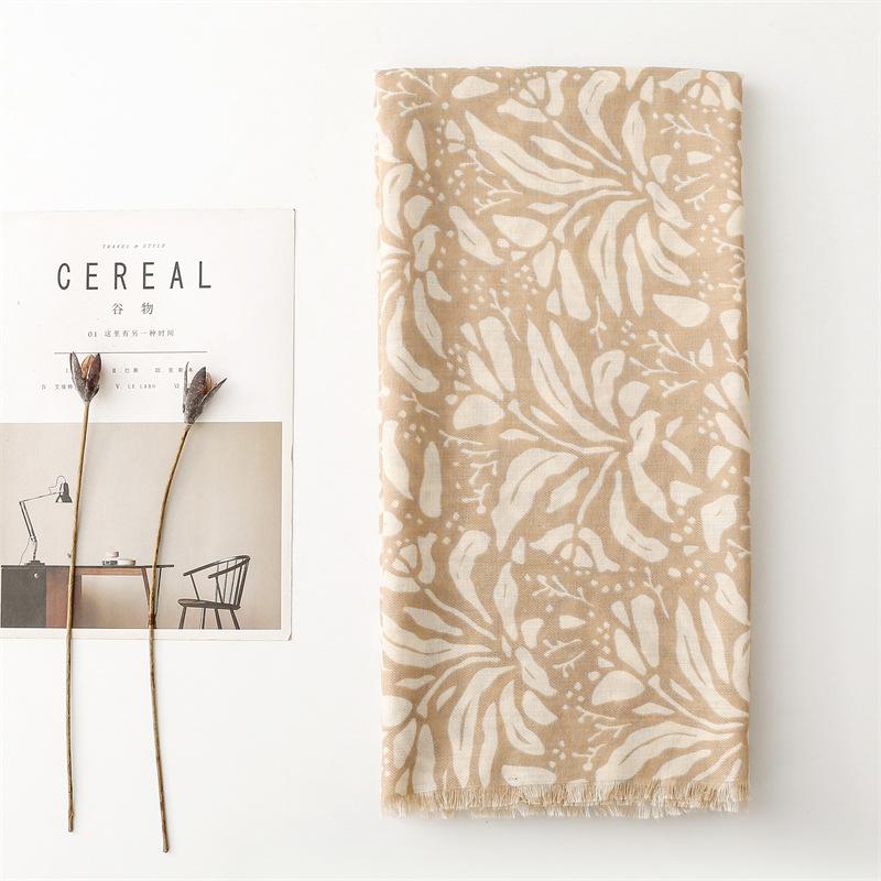 Роскошный женский шарф с принтом растений, шаль на четыре сезона, ощущение хлопка и льна, кисточки, пашмина, мусульманский хиджаб, накидка, женский вискозный шарф