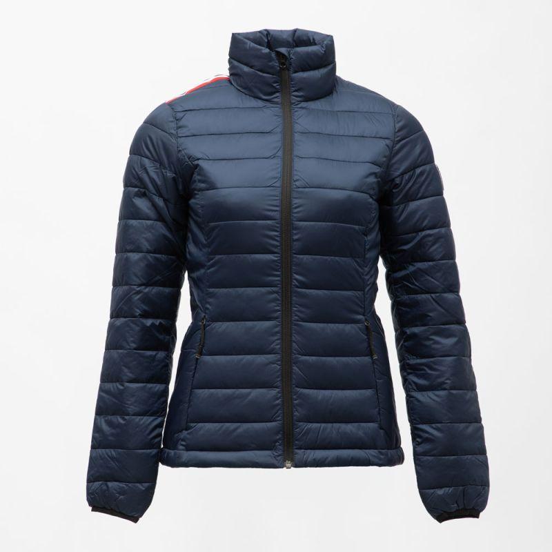 Тонкий приталенный стеганый пуховик с карманами на молнии и воротником-стойкой Женский ROSSIGNOL