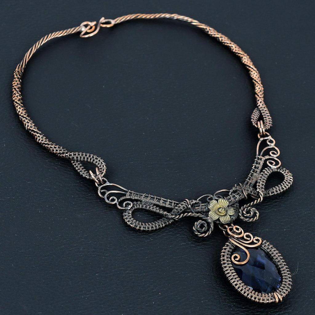 Amethyst Handmade Gemstone Necklace, 999 Copper Wire Wrapped Necklace Antique Jewelry, For Engagement Gift
