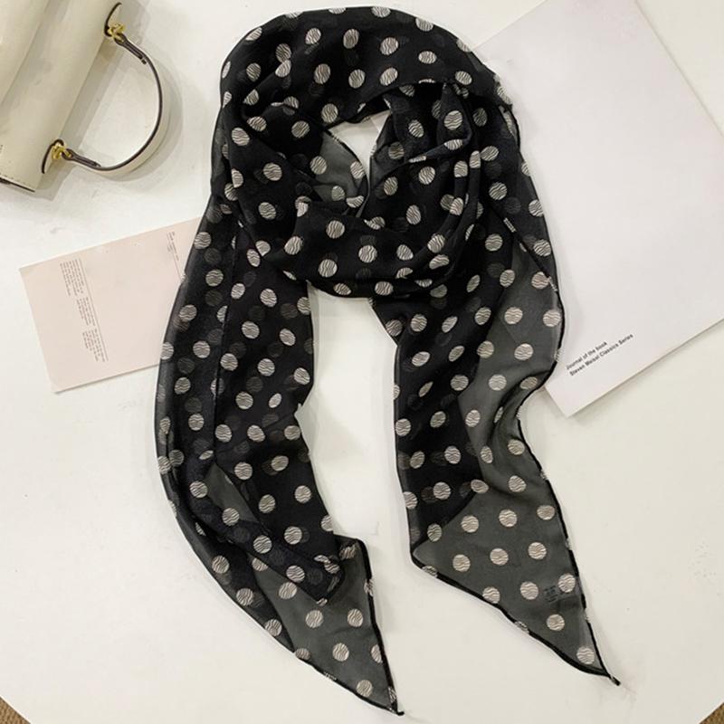 Новая корейская версия ins шифоновый в горошек длинный шарф женский с принтом высококачественный универсальный аксессуар шарф шейный платок