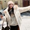 Осень-зима, утепленная теплая парка, женская повседневная милая однотонная Свободная куртка с капюшоном и большим карманом, верхняя одежда