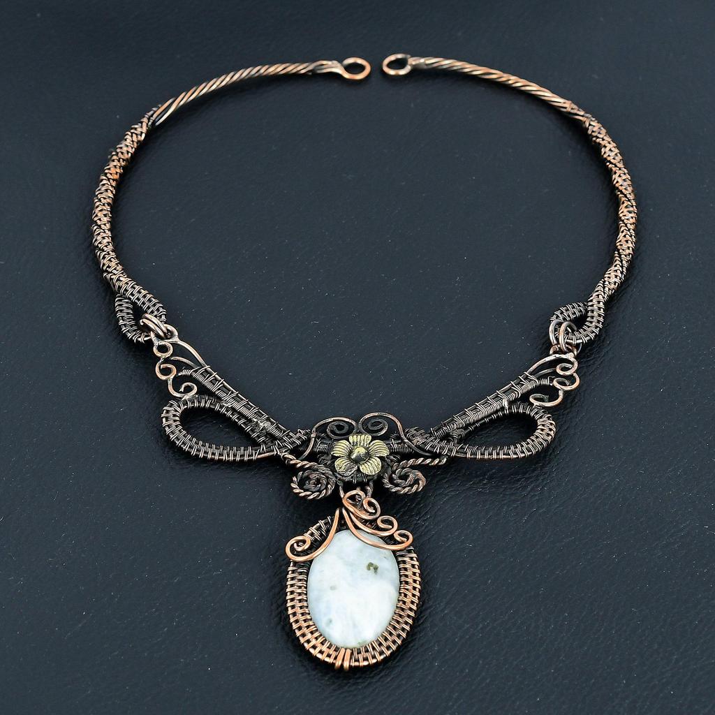 Ожерелье из радужного лунного камня, ювелирное изделие с драгоценным камнем, ожерелье с обмоткой из медной проволоки 999 пробы, регулируемое, ручной работы, красивая ювелирная цепочка-ожерелье
