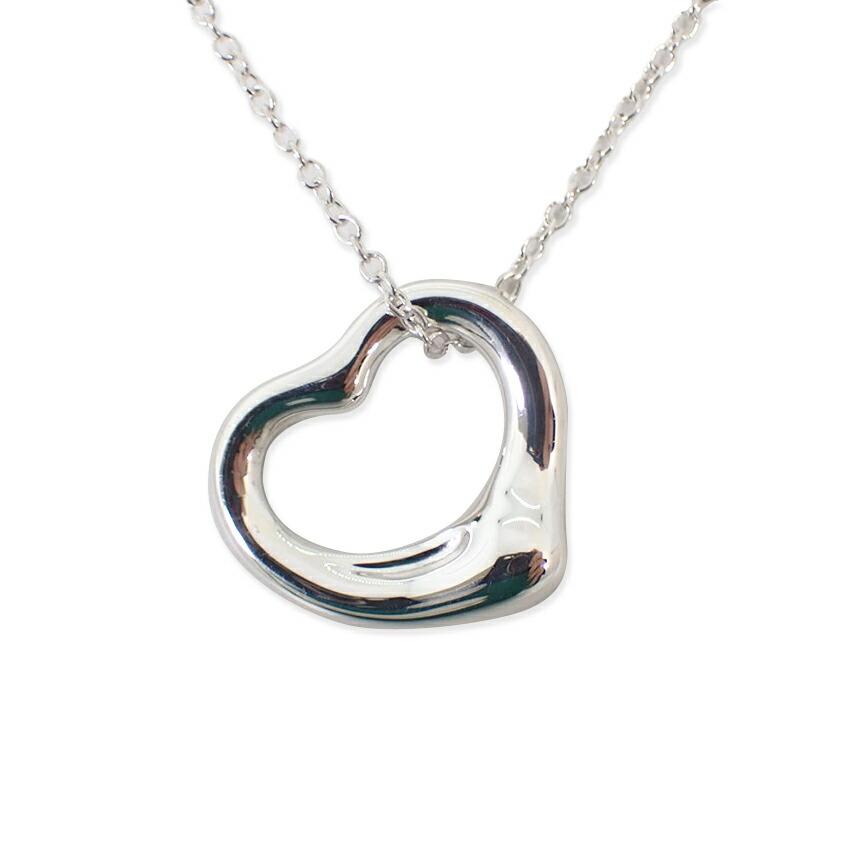 Pre-owned Tiffany & Co. silver 925 open heart pendant necklace j56-5