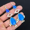 Blue Sapphire Stone 925 Silver Wife Drop Dangle Birthday Hook Earrings Jewelry