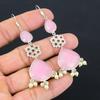 925 Sterling Silver Pink Chalcedony Gemstone Boho Drop Wedding Earrings Jewelry