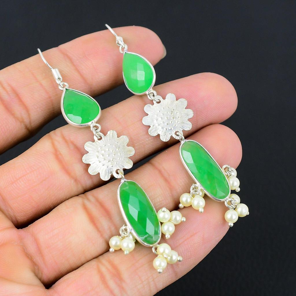 Серьги-подвески из стерлингового серебра с камнем зеленый кианит для чакры горла