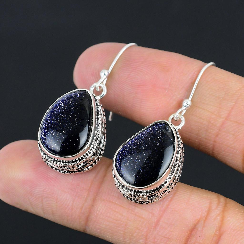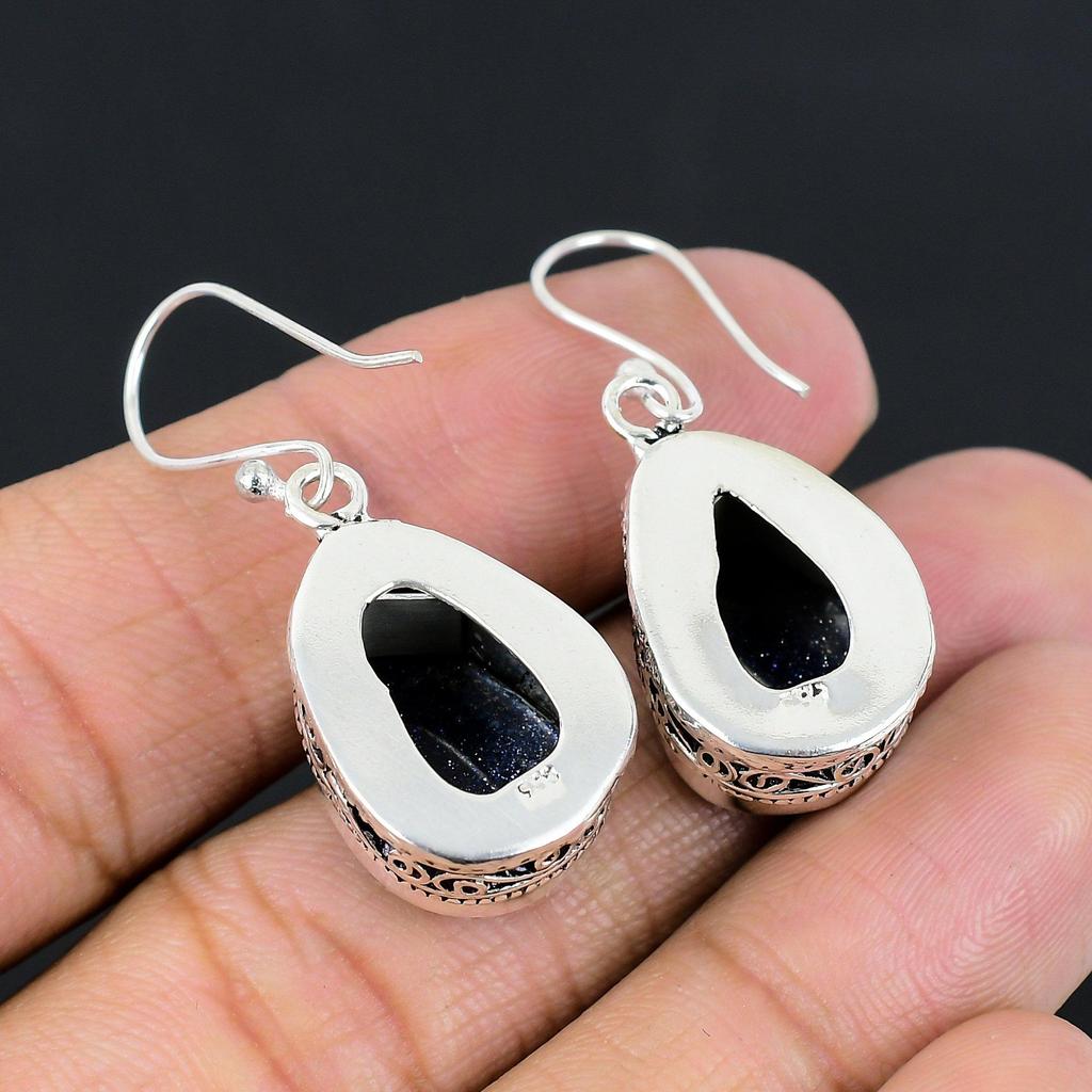Серьги-подвески из стерлингового серебра 925 пробы с голубым солнечным камнем, винтажные, ювелирные изделия