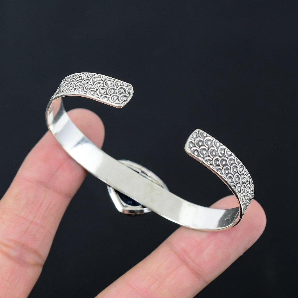 Чакра Третьего Глаза Натуральный Содалит Серебро 925 пробы Ручная работа Арт Деко Уникальный Новый Браслет-манжета