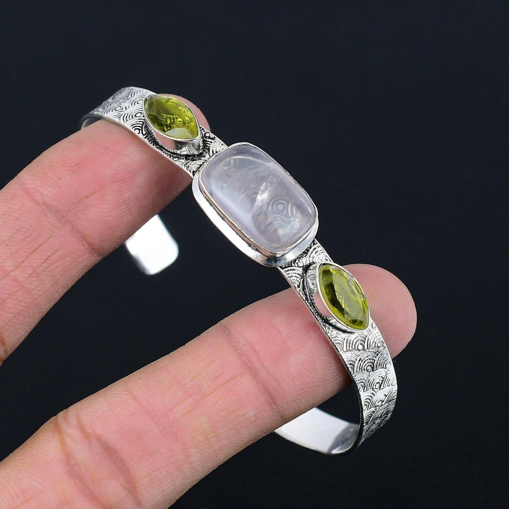 Подарок на день рождения для нее Натуральный браслет из розового кварца Регулируемый серебро 925 пробы