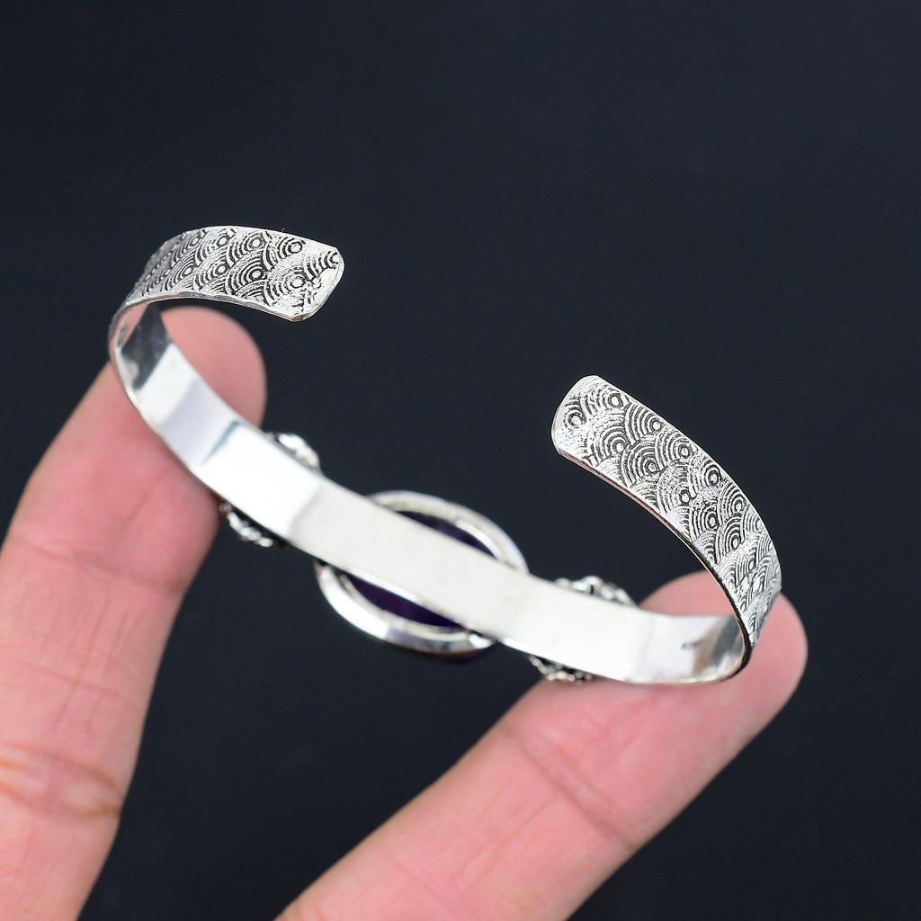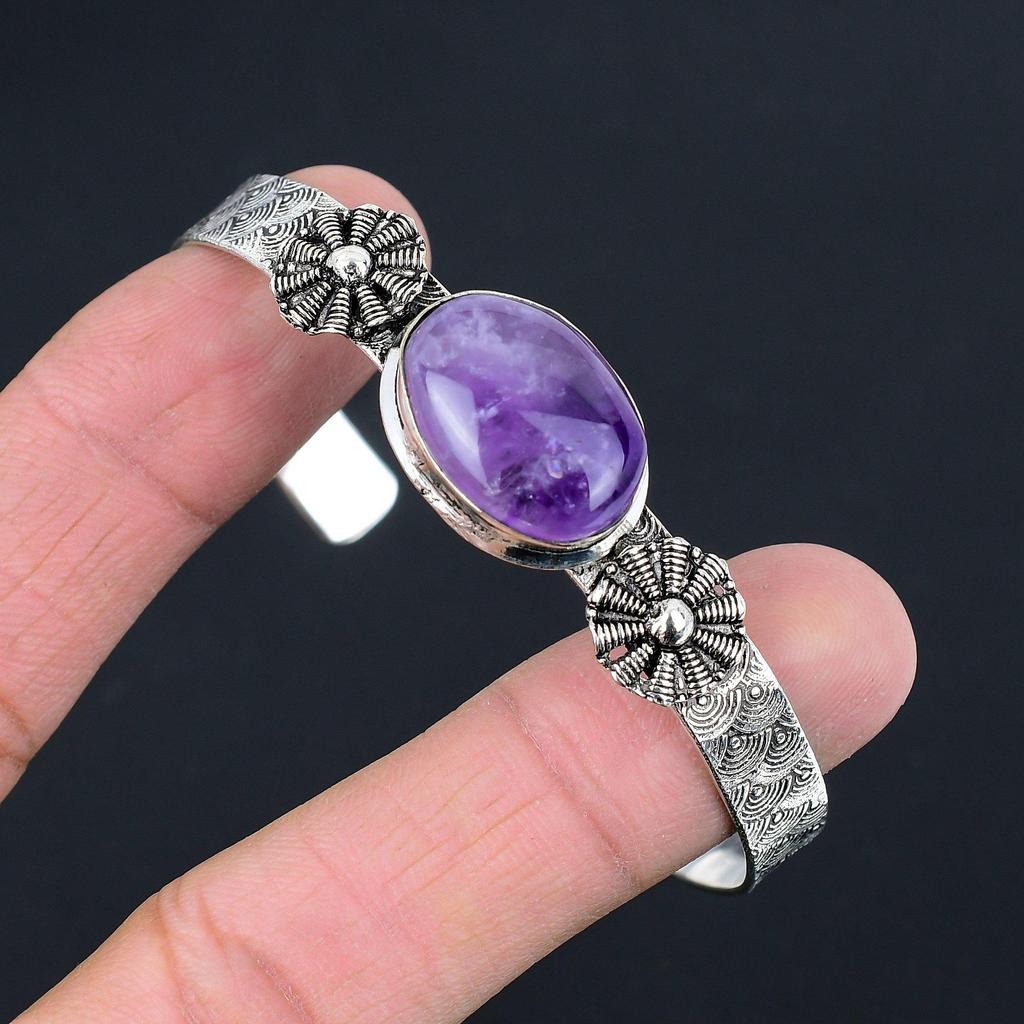 Распродажа ко Дню матери Браслет-бенгл из стерлингового серебра 925 пробы с овальным аметистом и звездой
