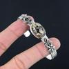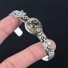 Womens day Deal Round Natural Turritella Agate 925 Silver Flower Mother Bangle