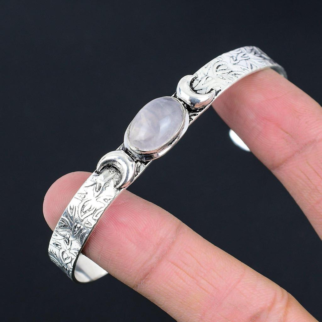 Подарок для нее Натуральный браслет из розового кварца Полумесяц Регулируемый серебро 925 пробы