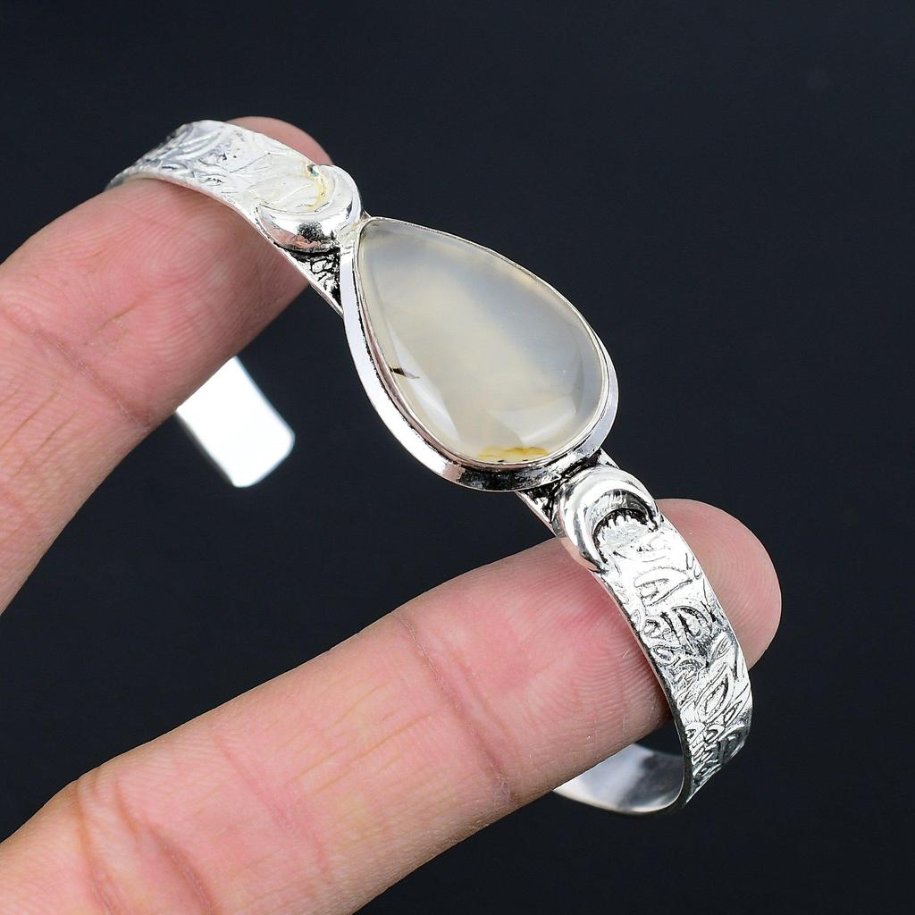 925 Sterling Silver Pear Montana Agate Gemstone New Crescent Moon Bangle Jewelry