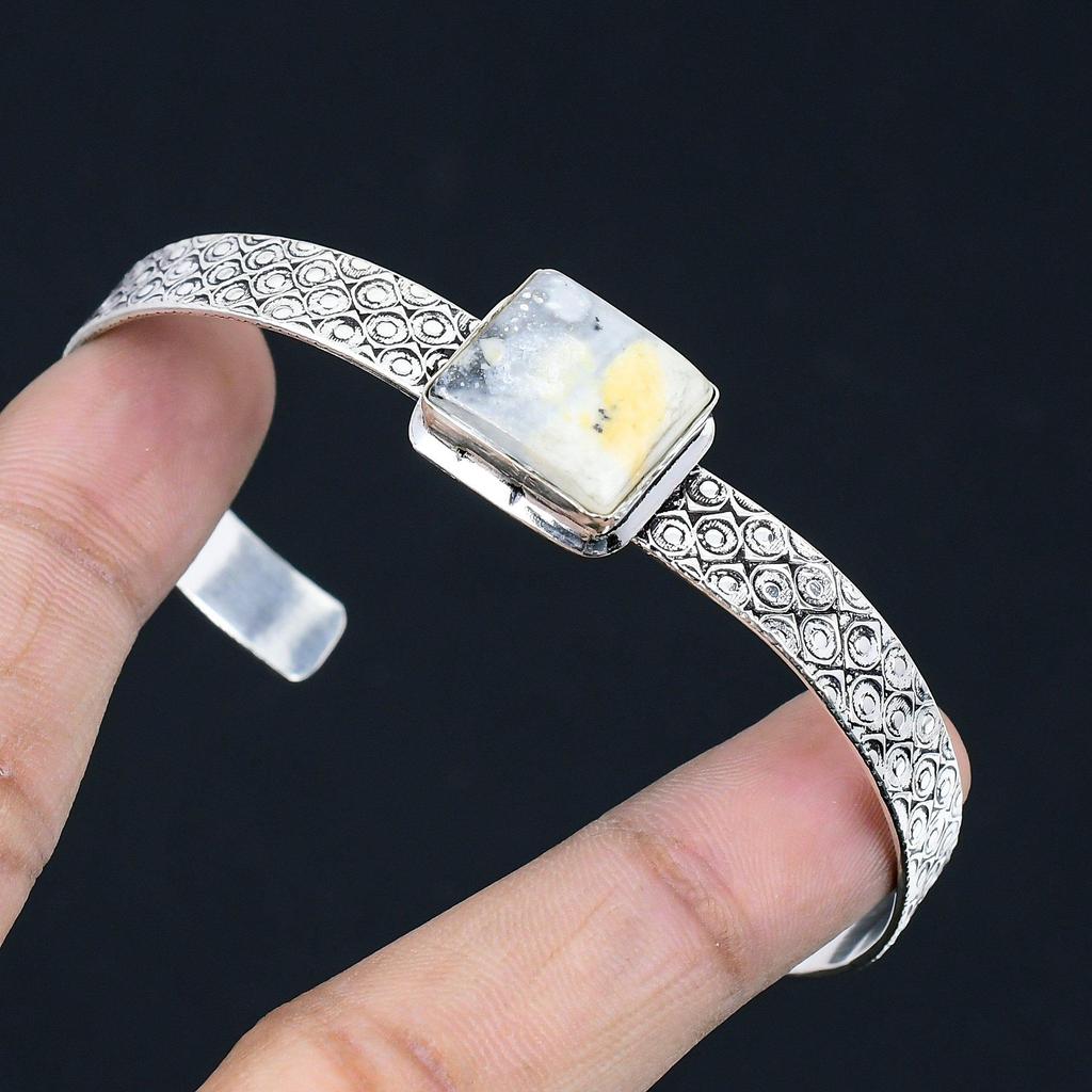 Хэллоуинская распродажа Натуральный Малигано Джаспер Арт Деко Браслет Ювелирные изделия Стерлинговое серебро
