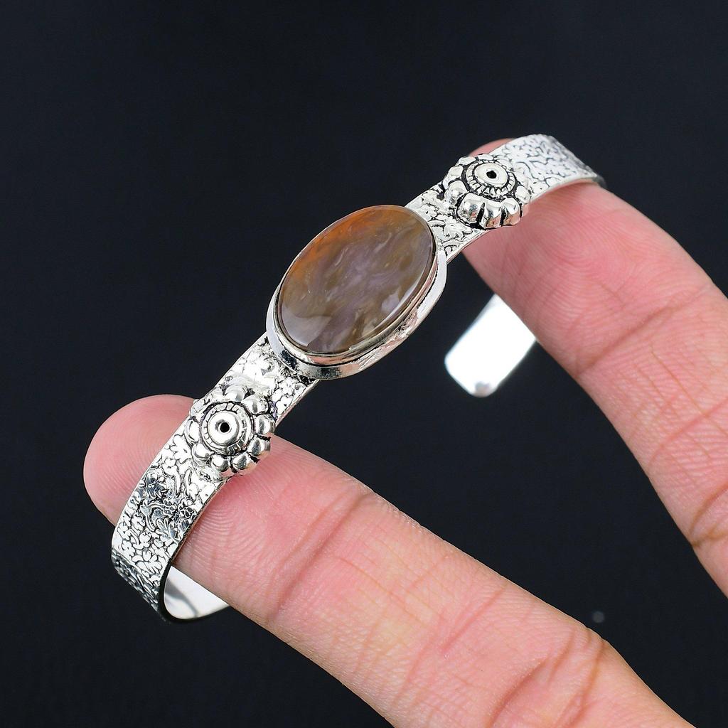 Memorial Day Sale 925 Silver Natural Tube Agate Anniversary Wife Bangle Jewelry