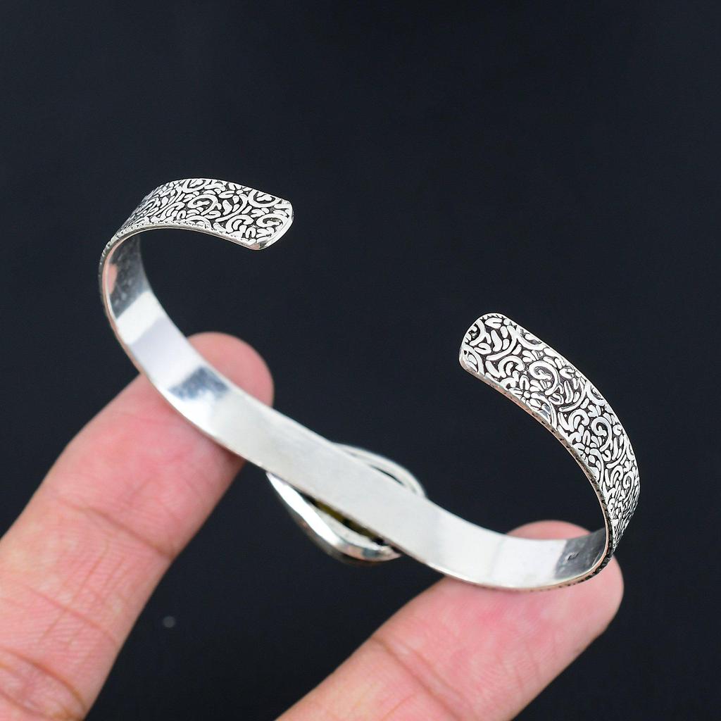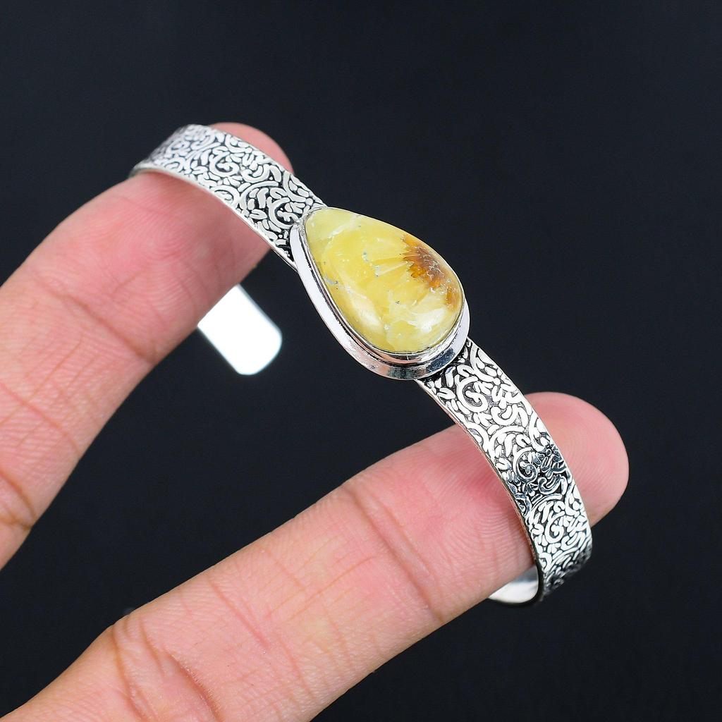 Натуральный Септариевый Камень Браслет Желтый Регулируемый Серебро 925 Пробы Украшение