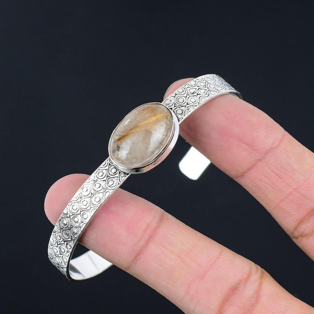 Sisters Day Sale Oval Golden Rutile Gemstone Sterling Silver New Bangle Bracelet