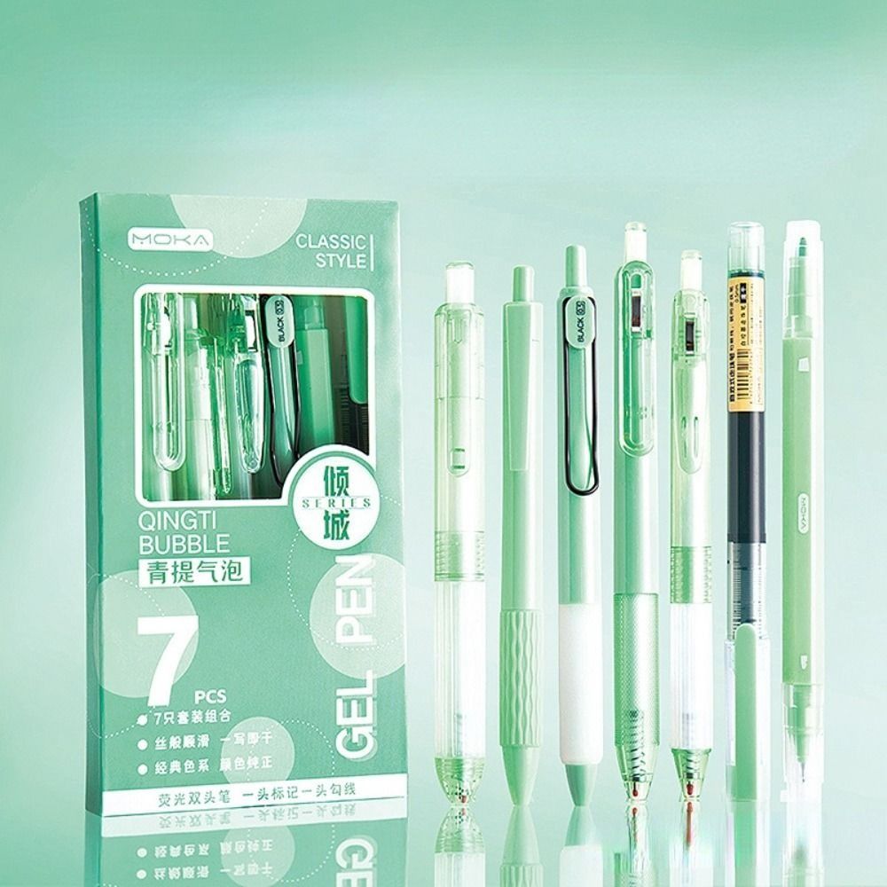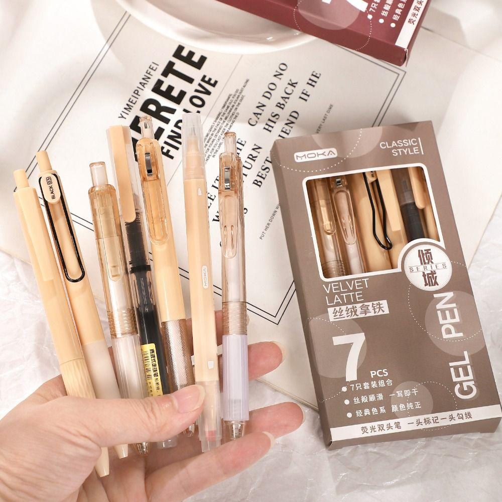 7Pcs/Set Quick-Drying Ink Highlighter Pen Set ST Tip Neutral Pen Ballpoint Pen School Office