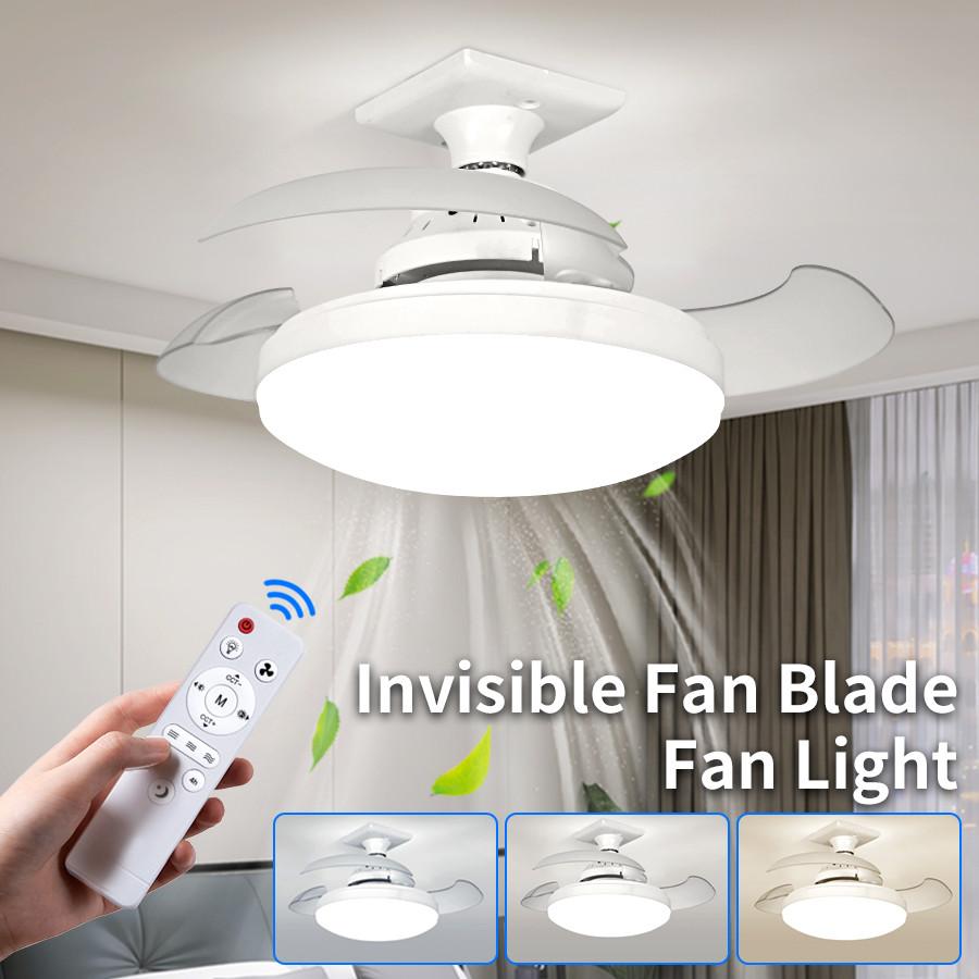 Потолочный светильник с невидимыми лопастями вентилятора, многофункциональный, E27, лампа-вентилятор для гостиной, регулируемая скорость ветра, умные осветительные приборы