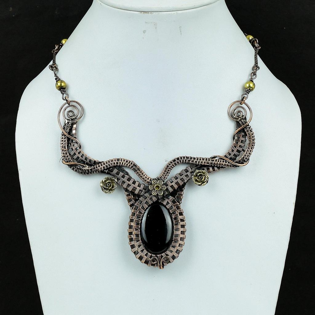 Ожерелье из черного оникса, украшения ручной работы, ожерелье, обернутое медной проволокой 999 пробы, дизайнерские украшения с драгоценными камнями, ожерелье с регулируемой цепочкой, подарок для мамы