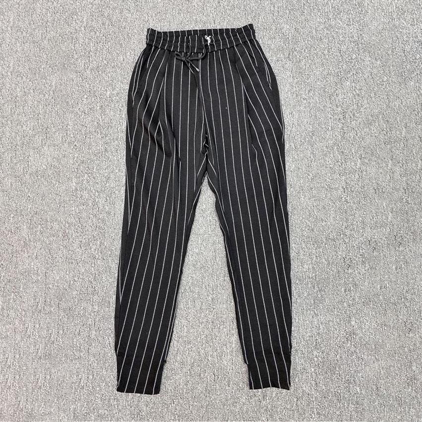 Летние мужские повседневные брюки с тонкой вертикальной полоской и эластичной резинкой на талии