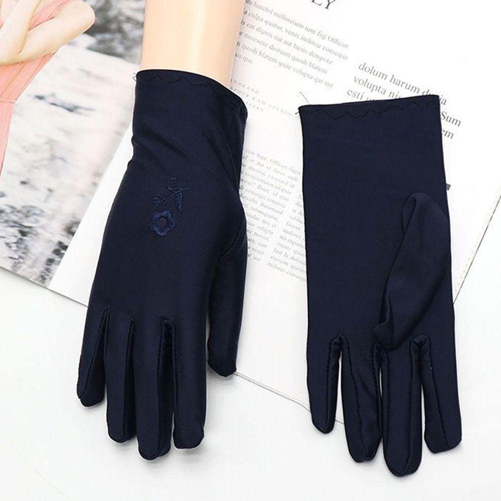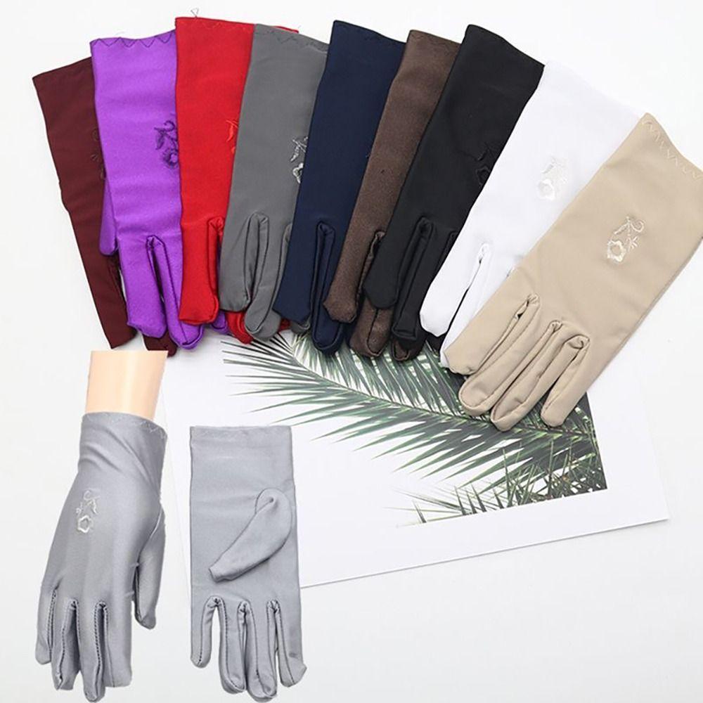 Вышитые перчатки для вождения Эластичные митенки с полными пальцами Модные летние варежки для девочек