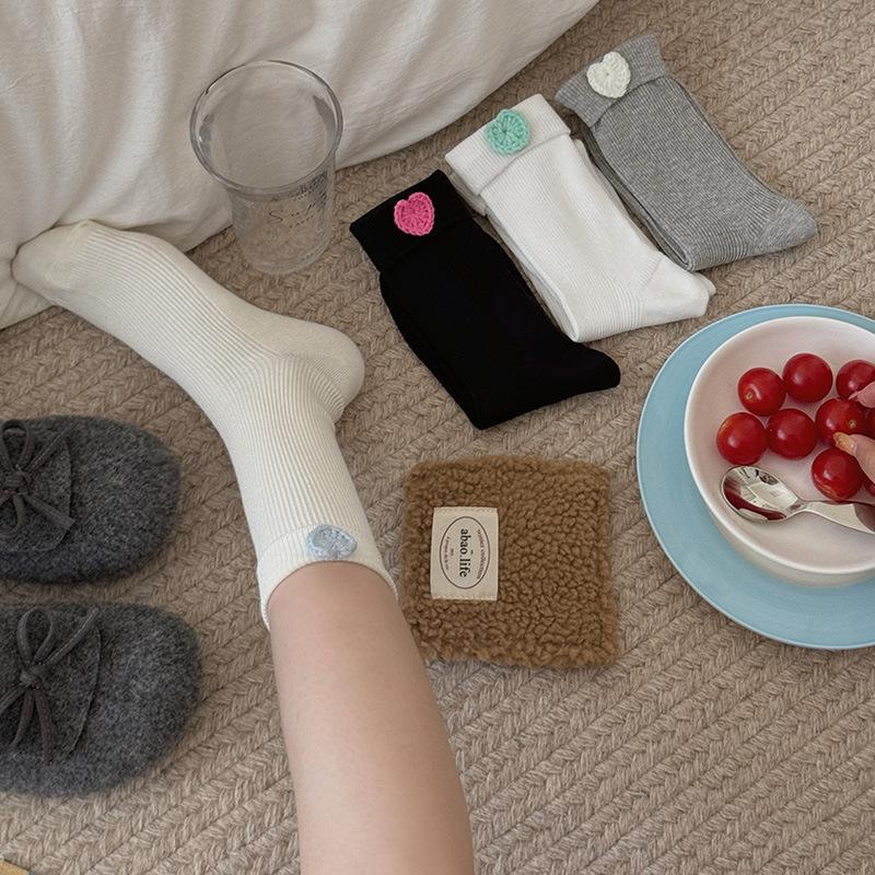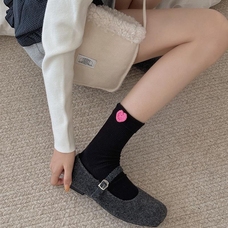 Женские милые шерстяные носки-трубы с оборками 'Любовь', для весны и осени, бесшовные, с махровым ворсом