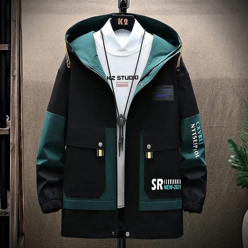 Весенне-осенняя мужская модная повседневная трендовая куртка с капюшоном. Мужская первая повседневная свободная водонепроницаемая куртка.