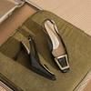 79901 [овчина] квадратный носок высокий каблук женские тонкие каблуки 2025 лето новая сумка носок слово с квадратной пряжкой сандалии