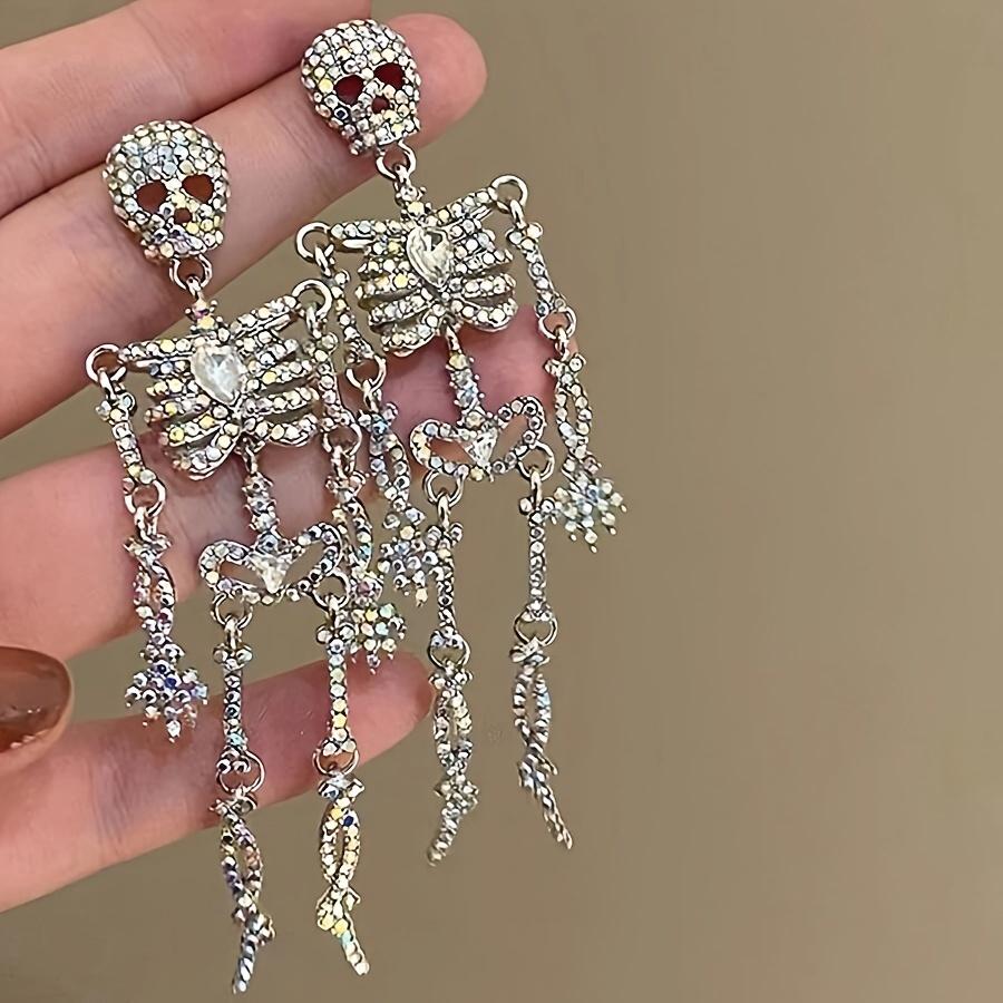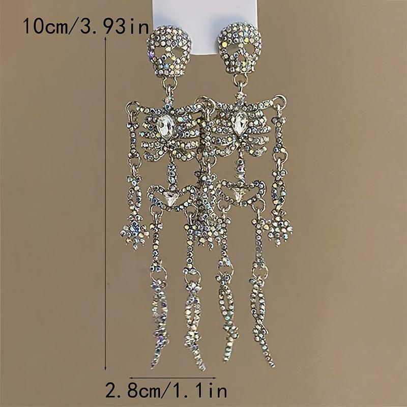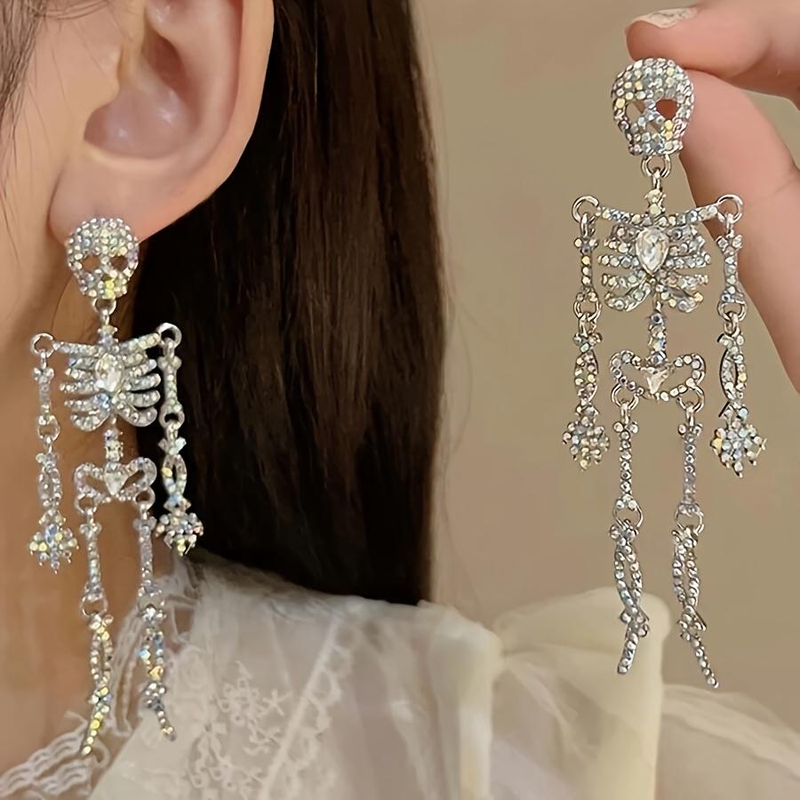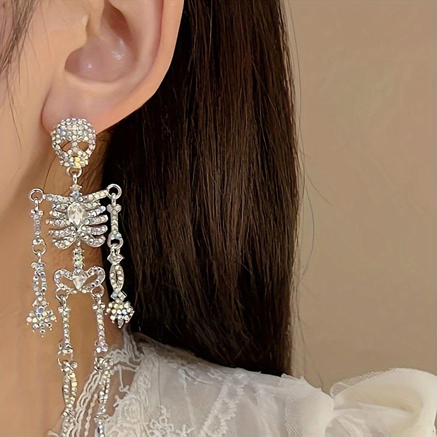 1 пара женских модных висячих серег Хэллоуин Ретро Готика Скелет Скелет Длинные серьги Подходят для подарка и праздничного ношения