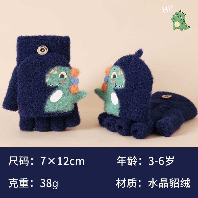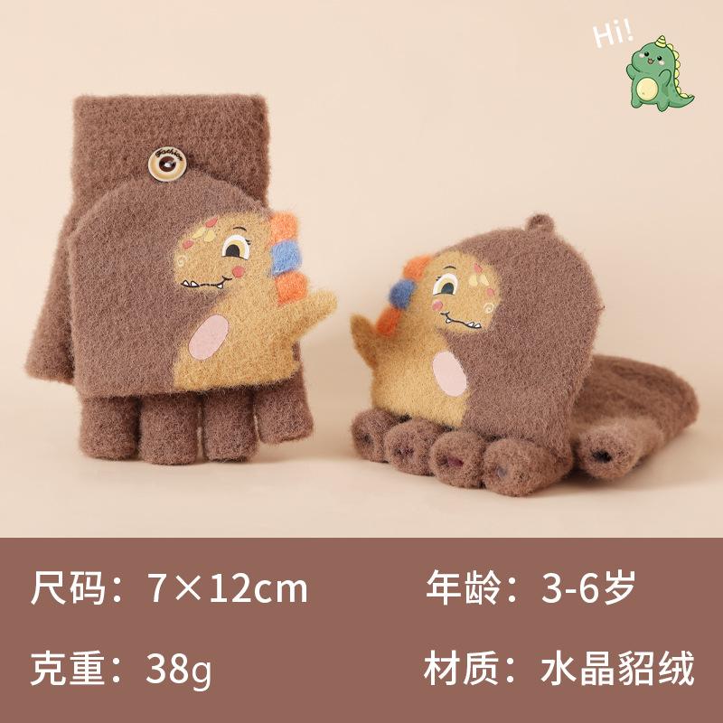 Детские перчатки-варежки на осень и зиму, с открытыми пальцами, для мальчиков и девочек, милые мультяшные динозавры, зимние теплые перчатки для письма