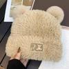 Милая шерстяная шапка с мишкой женская зимняя плюшевая теплая пушистая осенне-зимняя шапка вязаная для большого обхвата головы