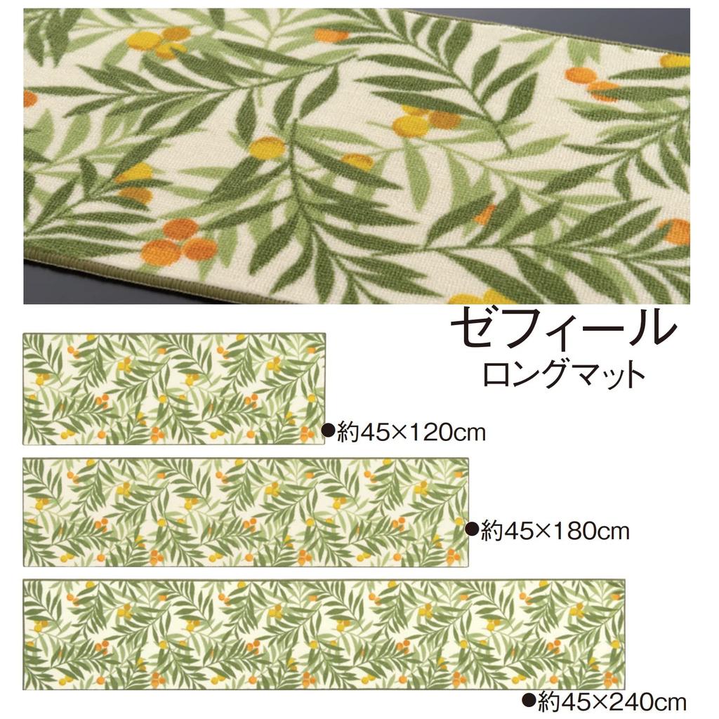 Senko Zephyr Kitchen 45 x Green with Leaf 67989 Mat, Approx. 120cm, Pattern, Natural, Non-Slip Backing,