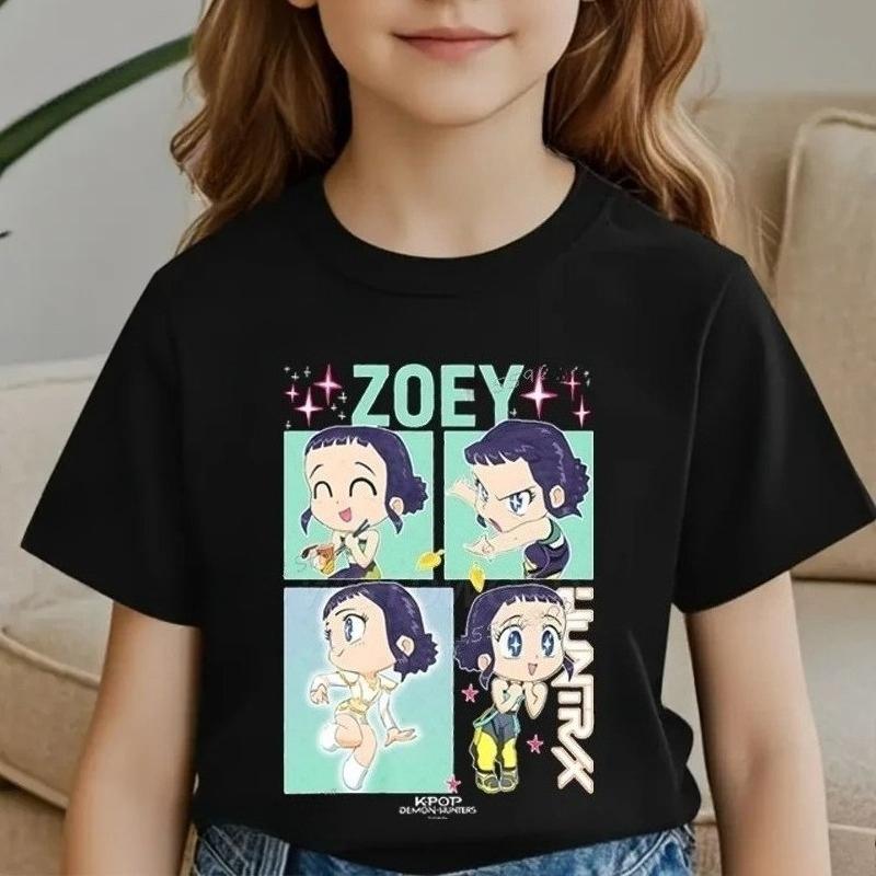 Детская футболка с принтом K-Pop Demon Hunters Zoey, мультяшная, из мягкого хлопка, для маленьких девочек, топы, одежда для малышей