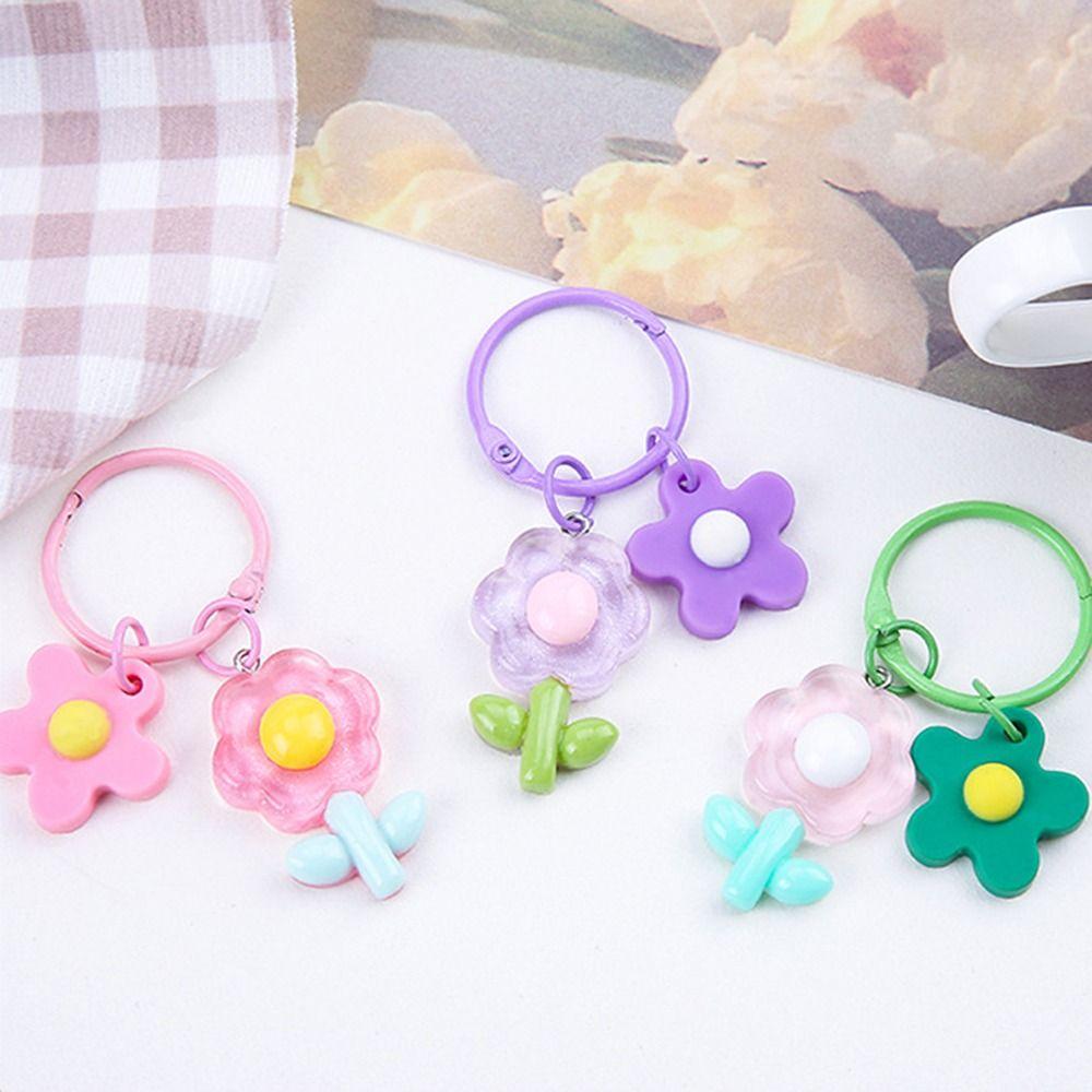 Ins Car Pendant Key Ring Colorful Bag Pendant Accessories Portable Acrylic Flower Key Chain Women