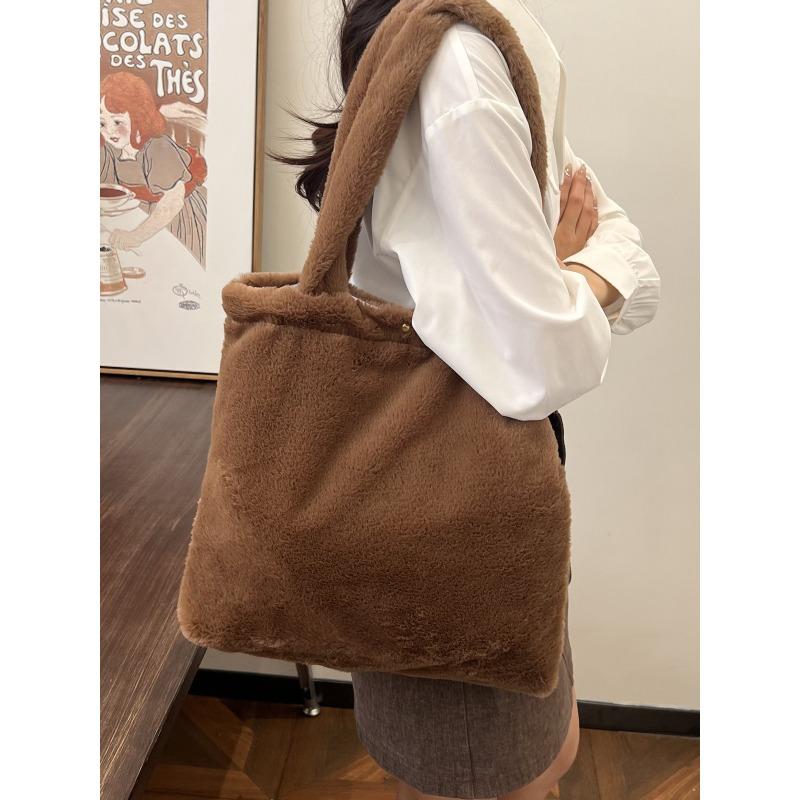 Плюшевая сумка женская новая модная зимняя однотонная модная на плечо подмышку плюшевая портативная маленькая квадратная сумка