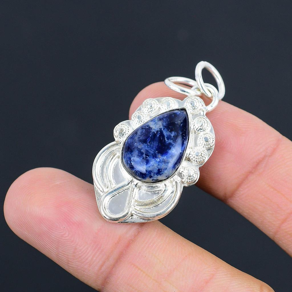 Friendship Day Deal Pear Sodalite Stone Elegant Boho Pendant 925 Sterling Silver
