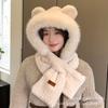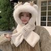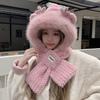 Шапка женская осенне-зимняя милая утолщенная пушистая шарф защита ушей большой обхват головы показать лицо маленький атмосферный шарф-шапка